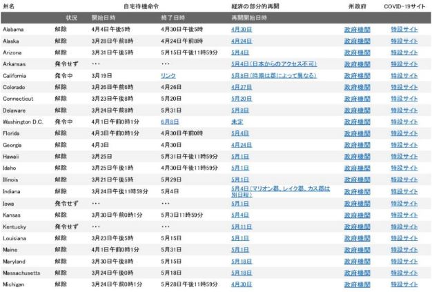 - アメリカ各州COVID-19対応状況一覧表-5/30最新版(pdf/新しいタブで開きます)